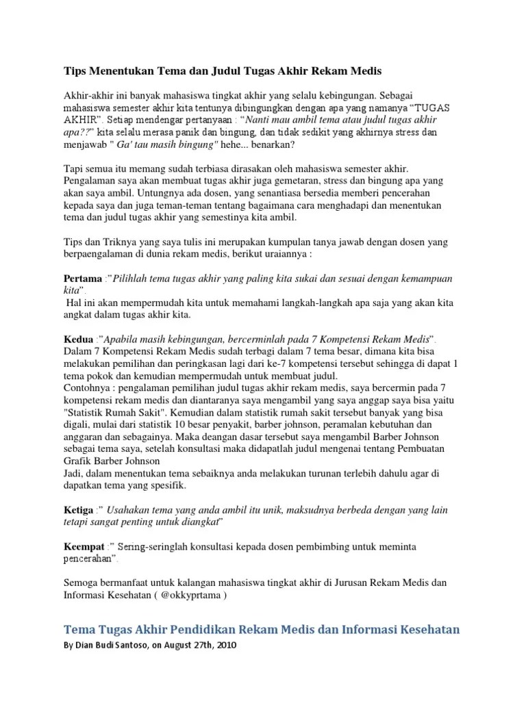 Judul Tugas Akhir Rekam Medis - Go Blog Daftar Judul Skripsi Rekam Medis Terbaru - Amikom yogyakarta dengan judul "analisis dan perancangan sistem.. Skripsi yang disusun oleh niky hardinata pada tahun 2015, mahasiswa stimik. Judul skripsi :perancangan dan prosedur penggunaan petunjuk. Beli rekam medis online terdekat di jawa tengah berkualitas dengan harga murah terbaru 2021 di tokopedia! Karunianya penulis dapat menyelesaikan tugas akhir dalam bentuk skripsi di unit. Tips menentukan tema dan judul tugas akhir rekam medis.